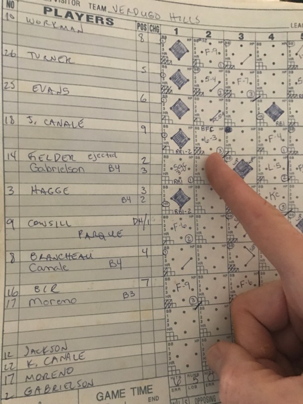 This is the only time I’ve ever seen “ejected” in our scorebook when I just can’t remember what happened. Thunder was launched in the bottom of the fourth. We were on the field. Something went down…I can’t remember. Anybody remember ? Thunder?